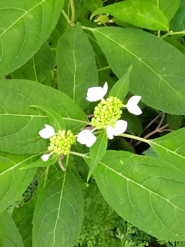 大山蓮華の下で装飾花咲き始めました🎶