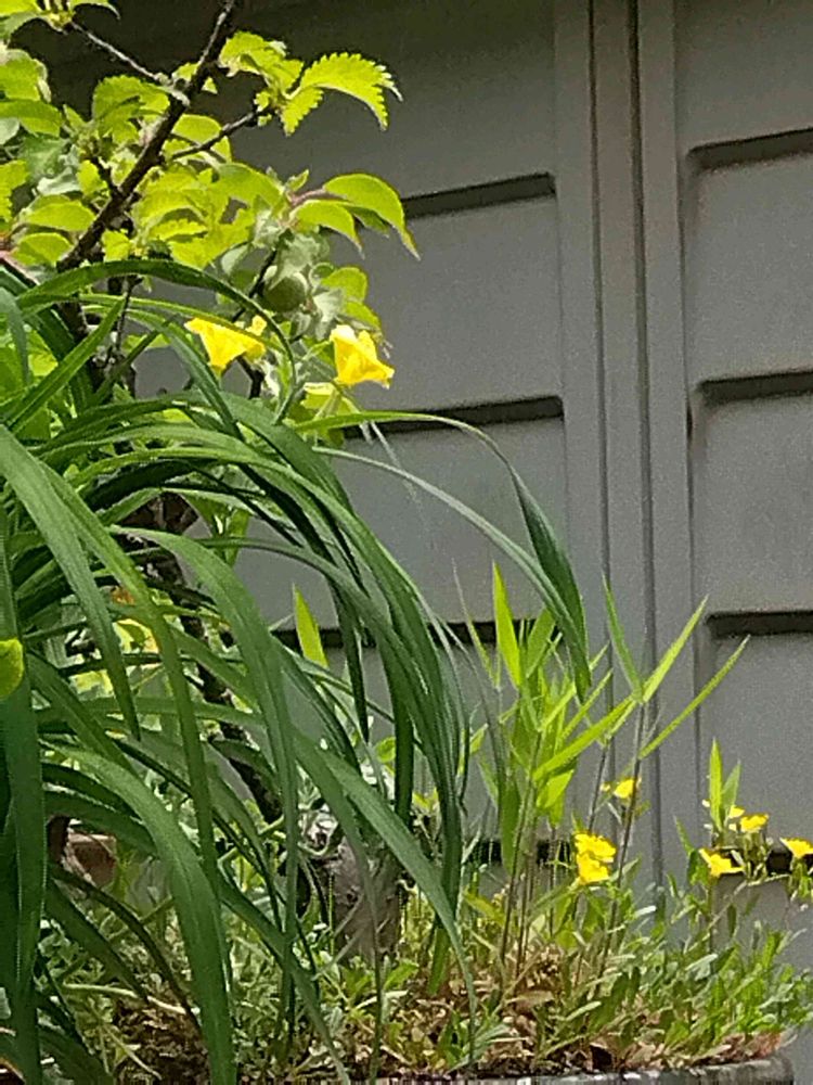 棚の奥に月見草2種咲いてる❗️