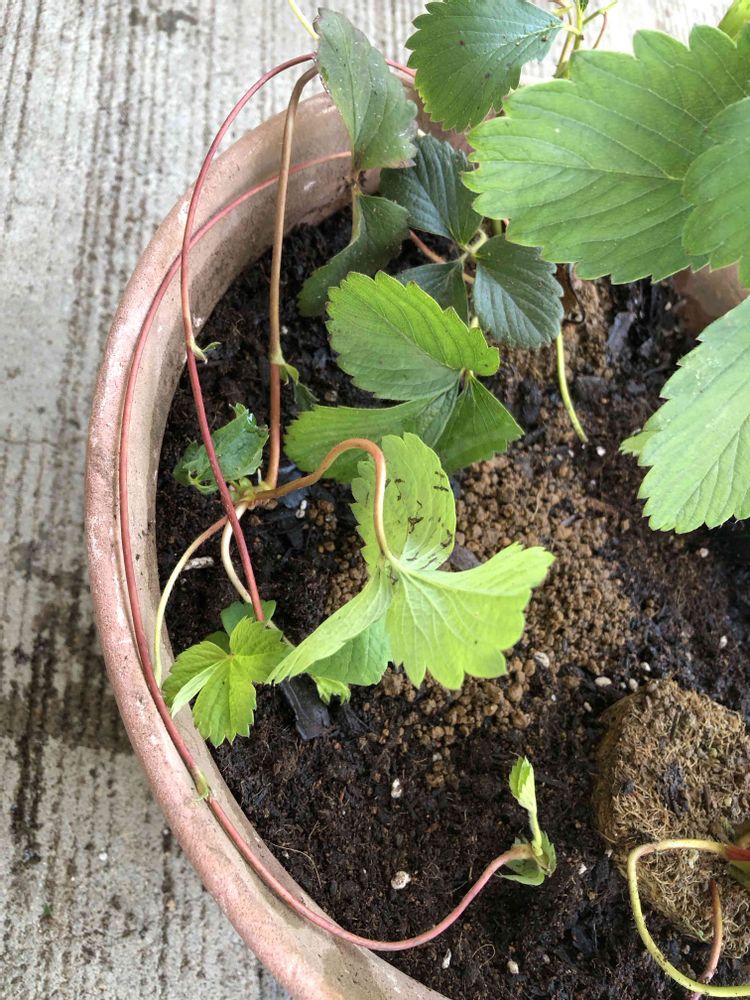 紅ほっぺの株の成長、ランナーのポット受けと楽しみいっぱいですね🍓