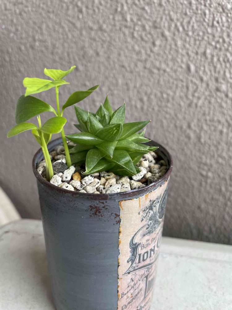ハオルチアの横に謎の植物が芽を出してきた💦