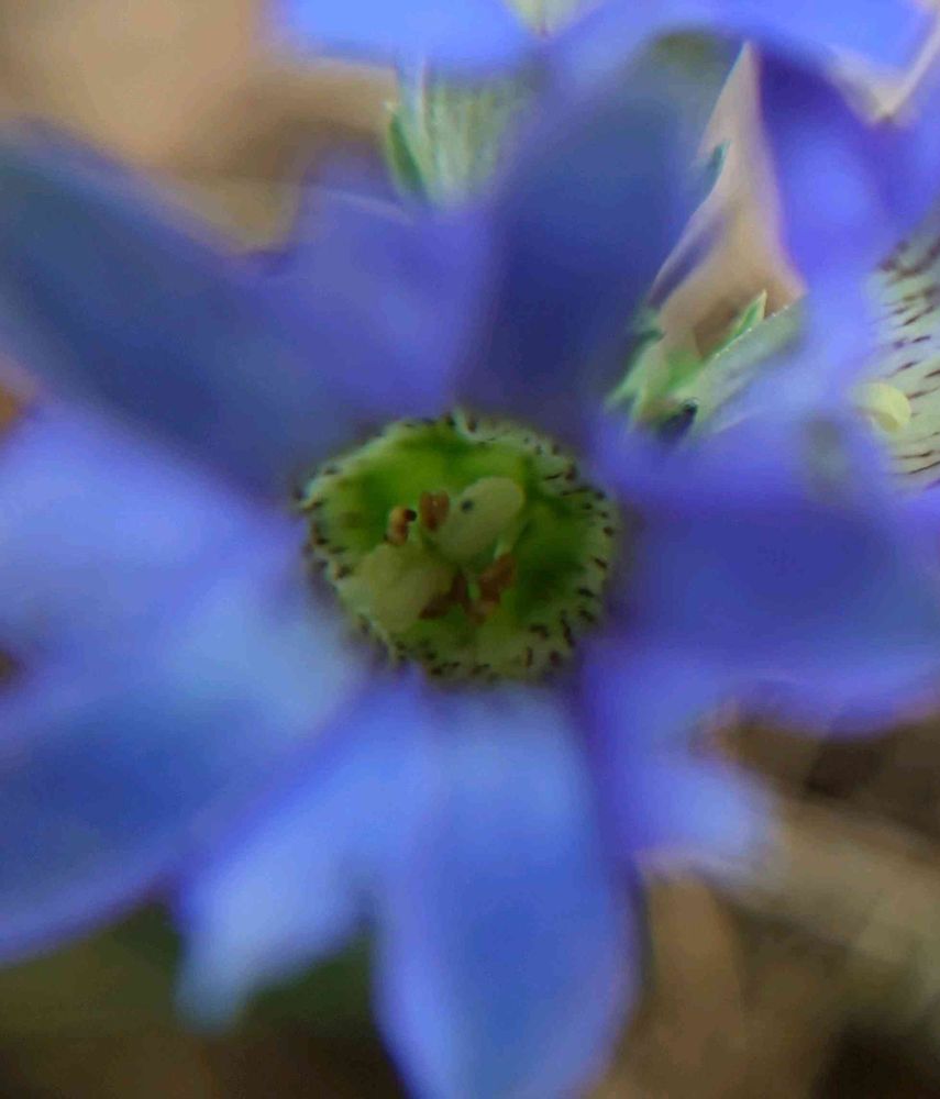ハルリンドウなどは、花粉を出し終わると雄しべは外側に傾倒しますが、フデリンドウは違うようです