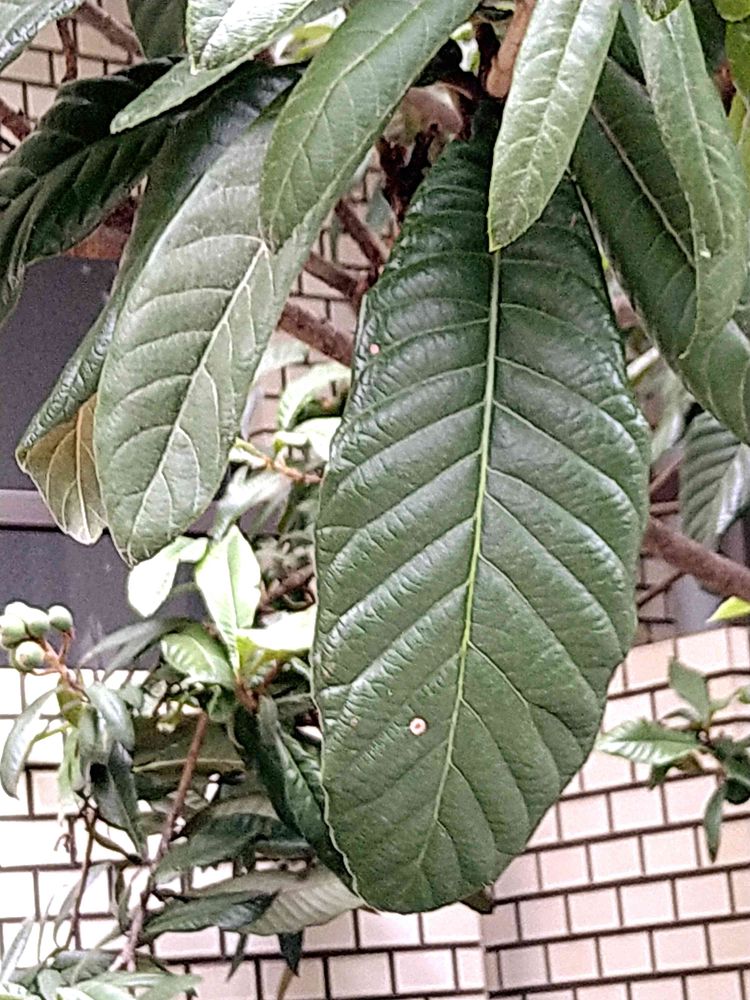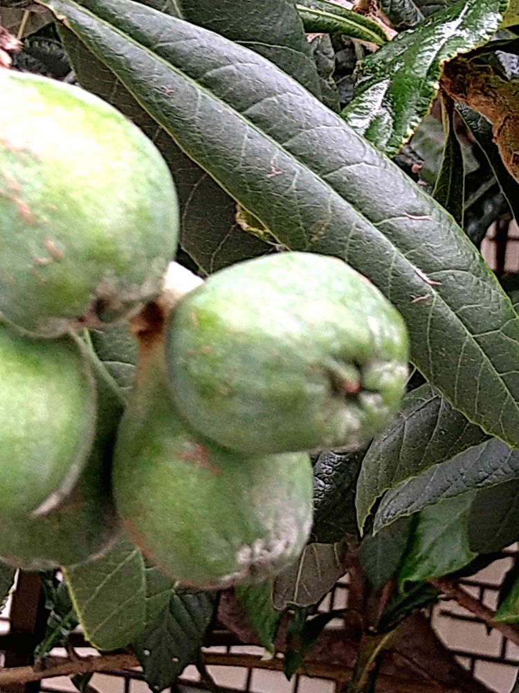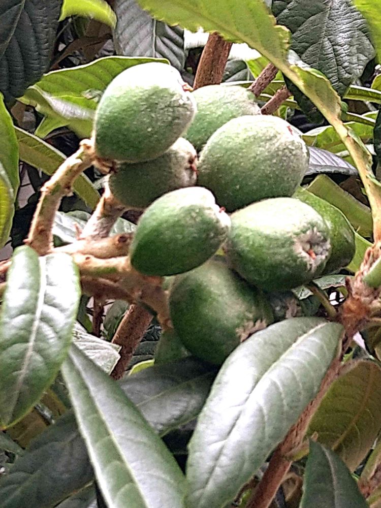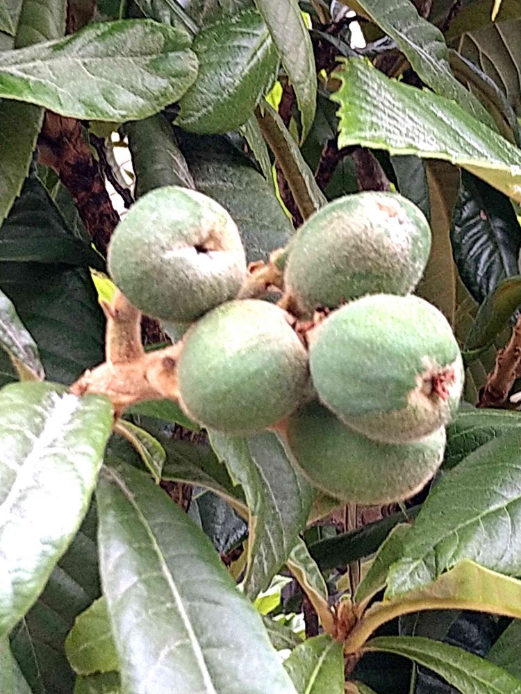 びわは、寒い時期に花が咲き、もう青々とした実がなっています。