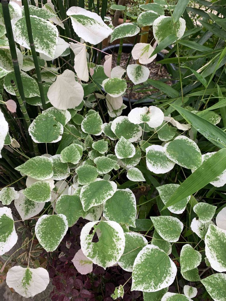 ハナズオウの中では、やっぱりシルバークラウドが1番葉が見応えある。どの種もこの時期涼しげで好きなんやけど、、