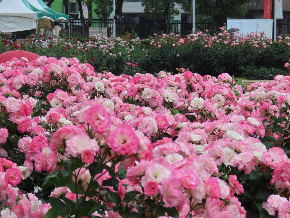小雨の中薔薇祭り開催地
