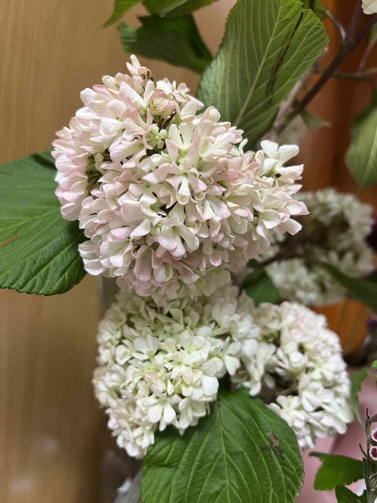 ピンク色が珍しいと言われ紫陽花に似てる花と言われましたが、オオデマリなのかもしれないんですね😅似てますものね😆