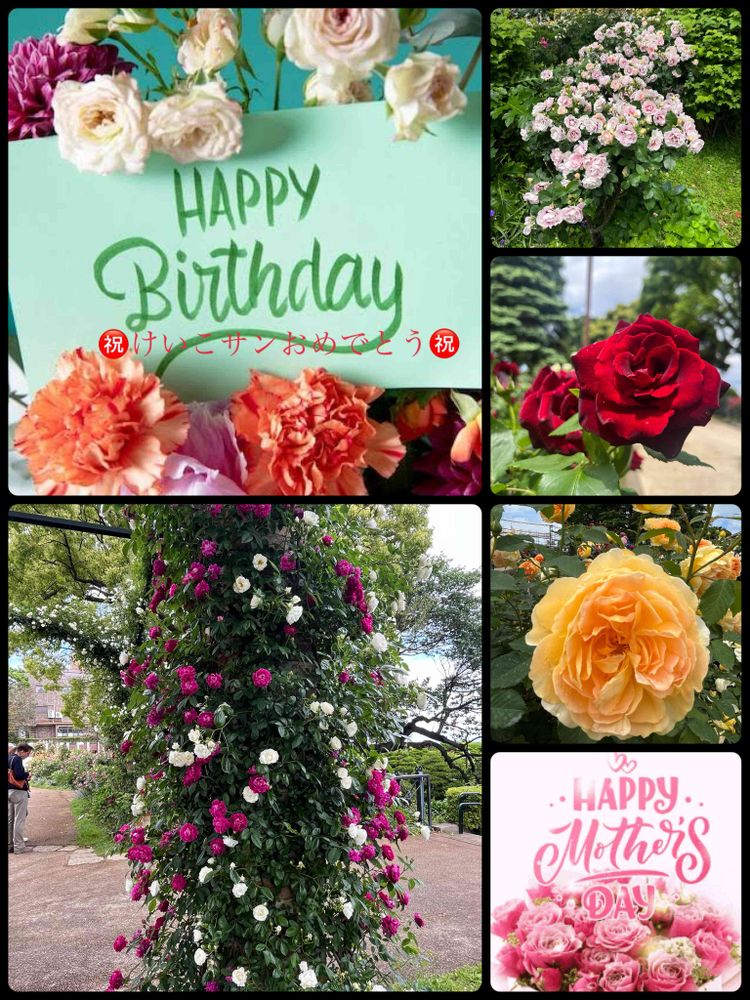 港が見える丘公園の薔薇のコラージュでお祝いメッセージさせていただきます🥰💕