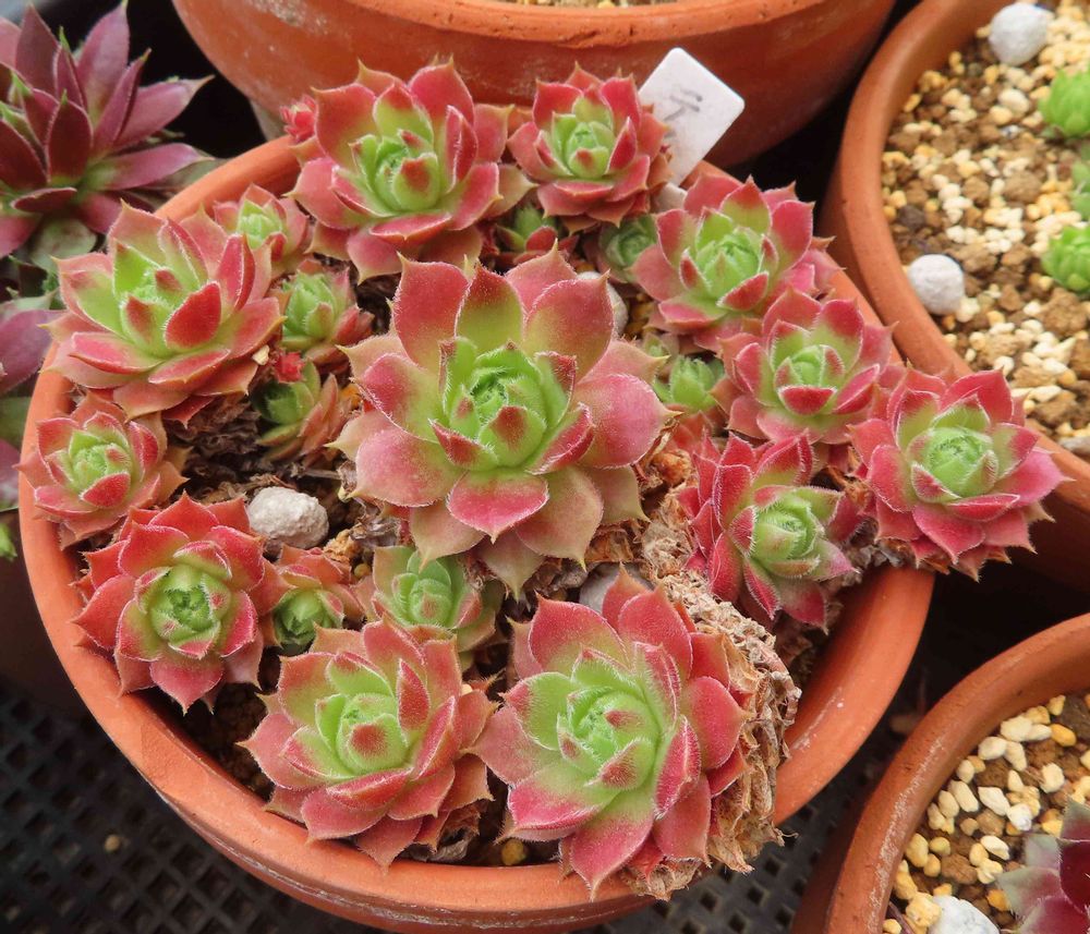 センペルビウムのテストの群生が花が咲いたような姿になってきた。