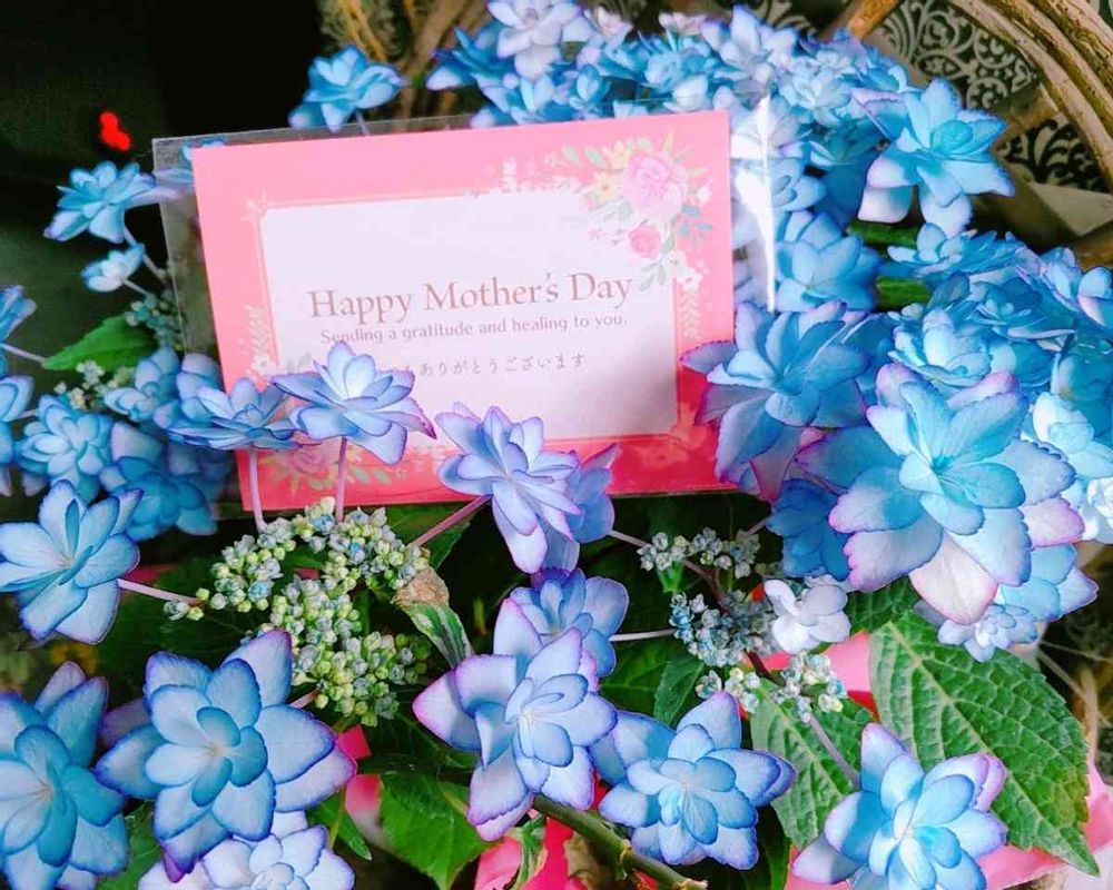 母の日にと 少し早いけど 娘から紫陽花 ひな祭りブルーが届きました💙