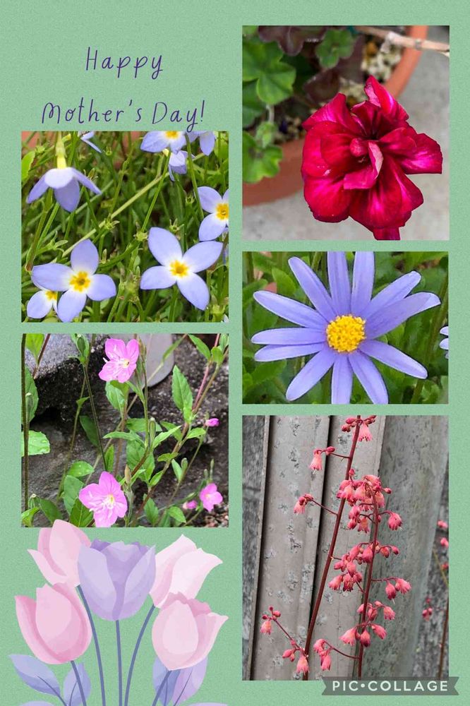 そこで、私の小さな庭に今新たに咲いてるお花達🌸🌼を母の日コラージュ🖼️にしてみました。