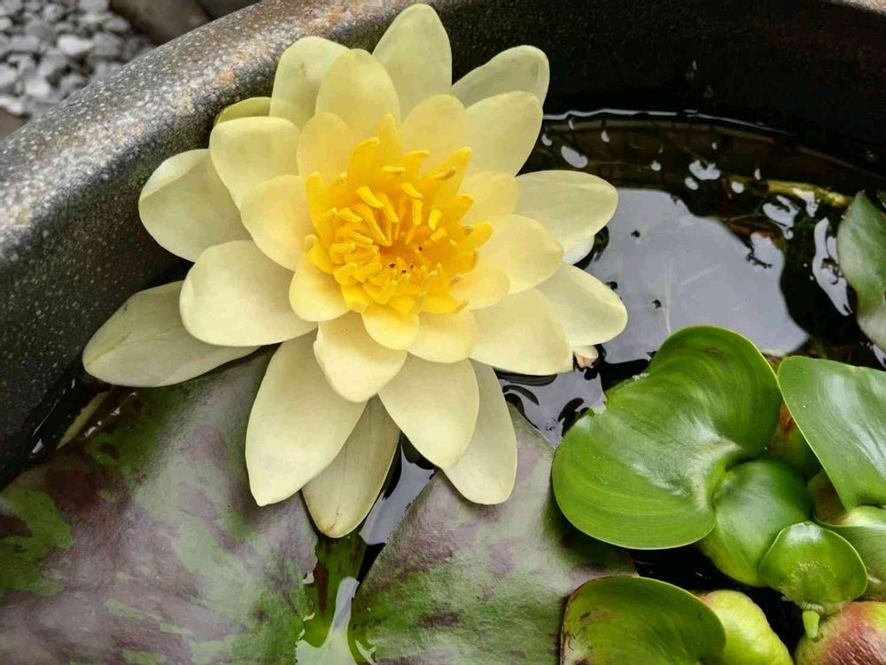 メダカの水瓶に今年も咲いた