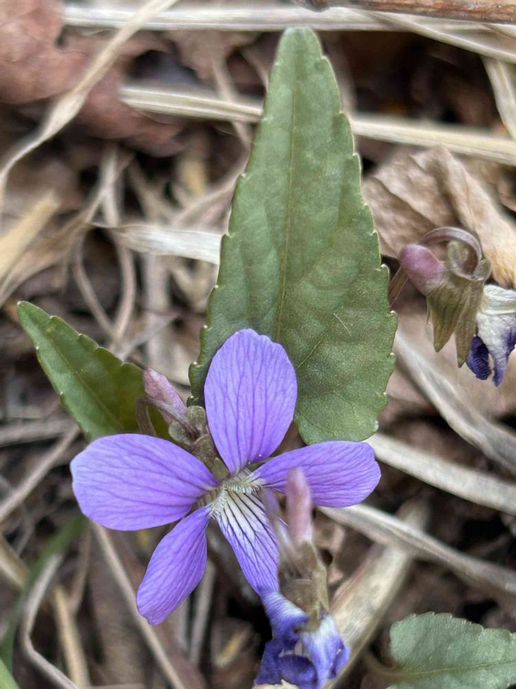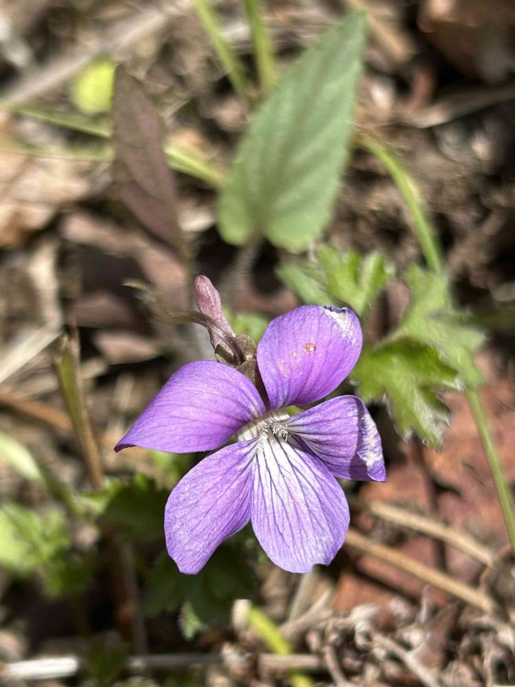 標高1100mのまだ茶色の世界に大きなスミレが春を告げる💕