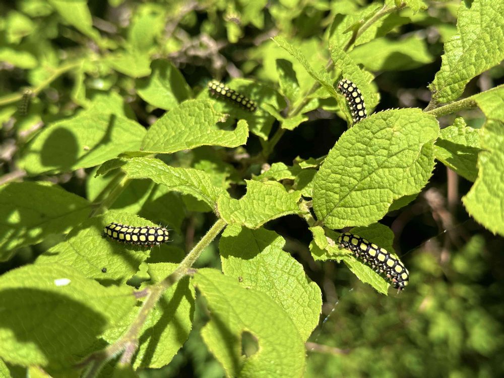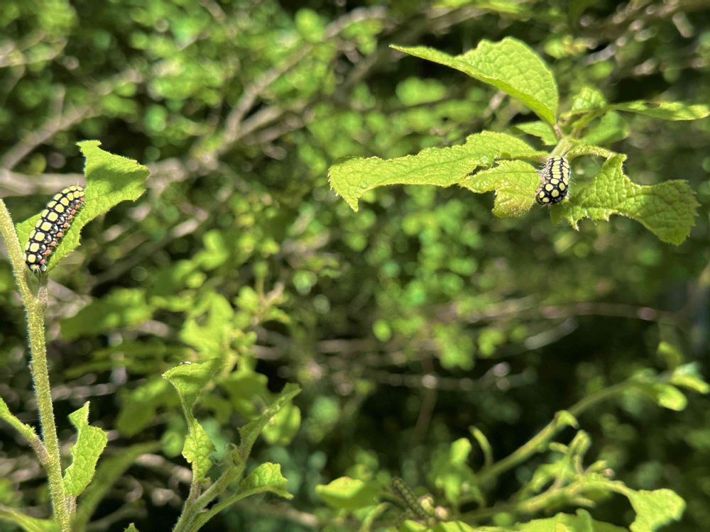 今回も花がほんの少し付いてるだけ…なんでかなぁ⁉️と寄ってみたら、ありゃあ、なんと芋虫が無数についていて葉が丸坊主にされそうな勢い‼️