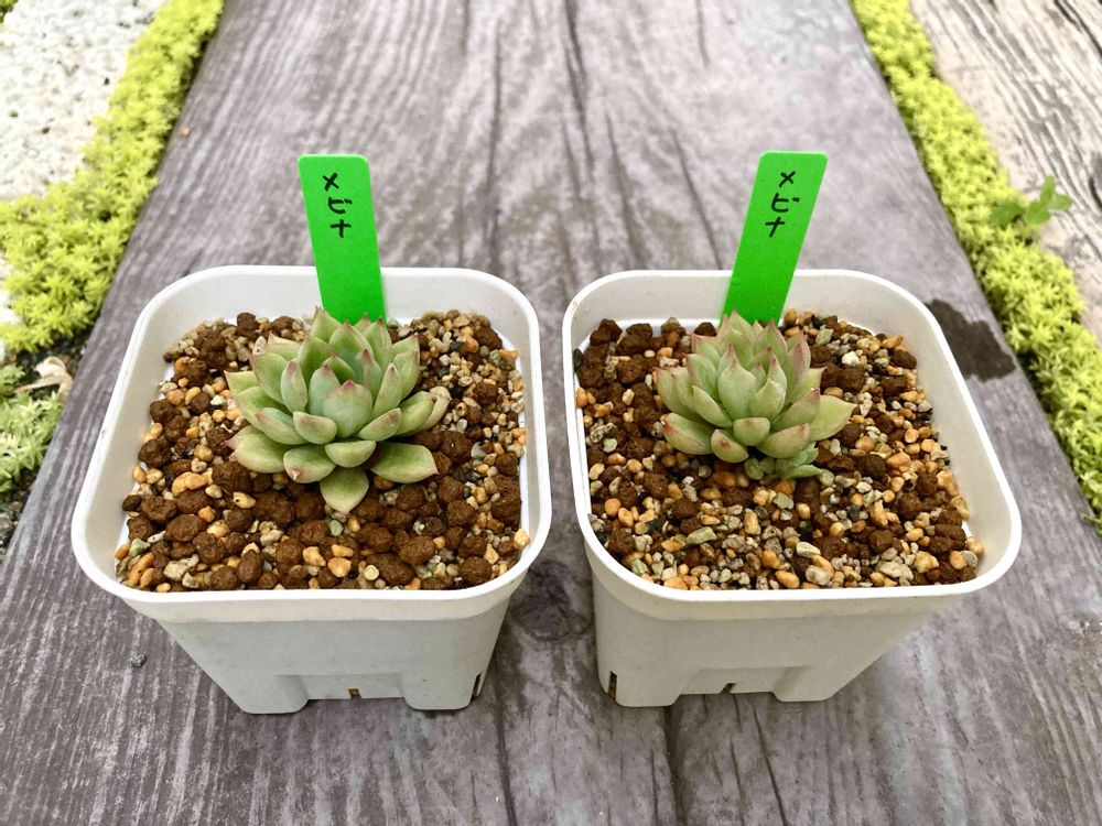 メビナは下から子株が出て群生していくので、少し大きさに余裕のある鉢(プレステラ90)にしました。