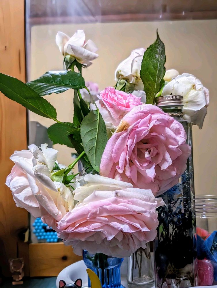 暗闇の中、車庫脇から花を切って適当にいけてみた。