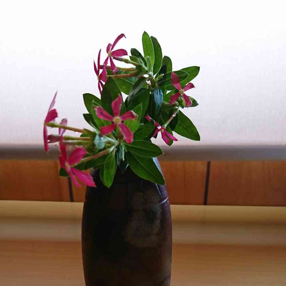 おはようございます😊お庭のニチニチ草が折れていたので生けて見ました。