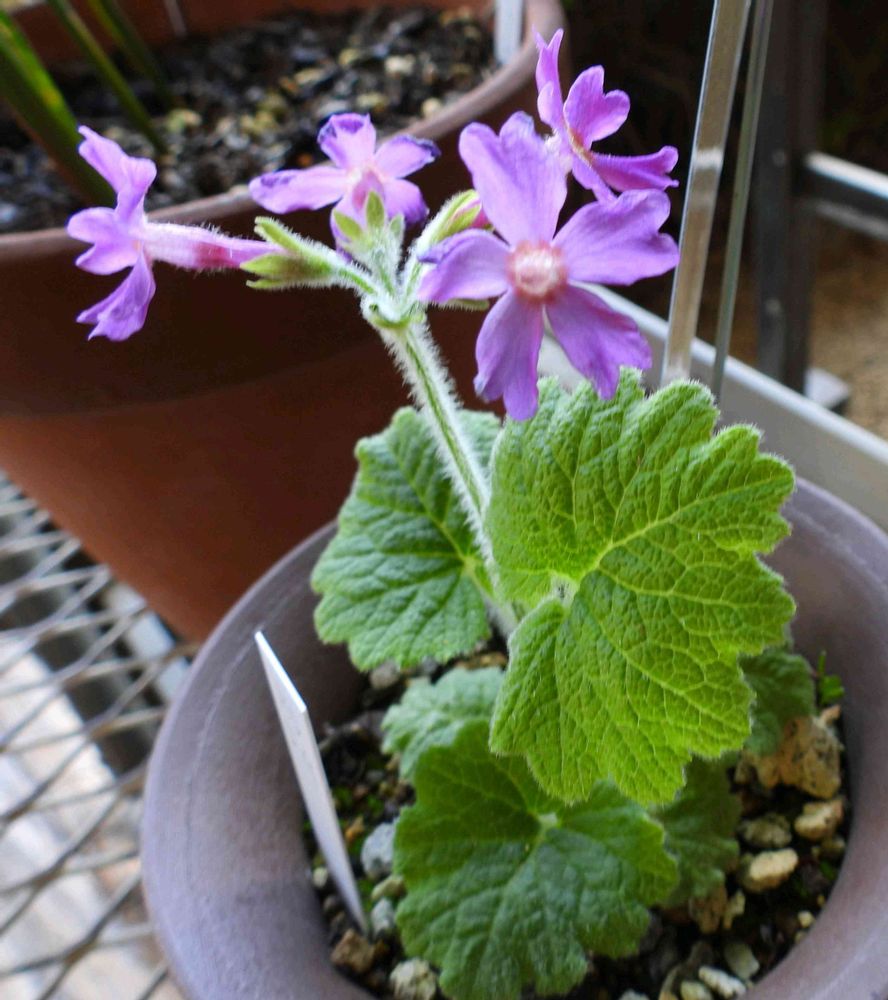 花柄や葉柄に白い長毛があり、葉の形も普通のサクラソウと違います。