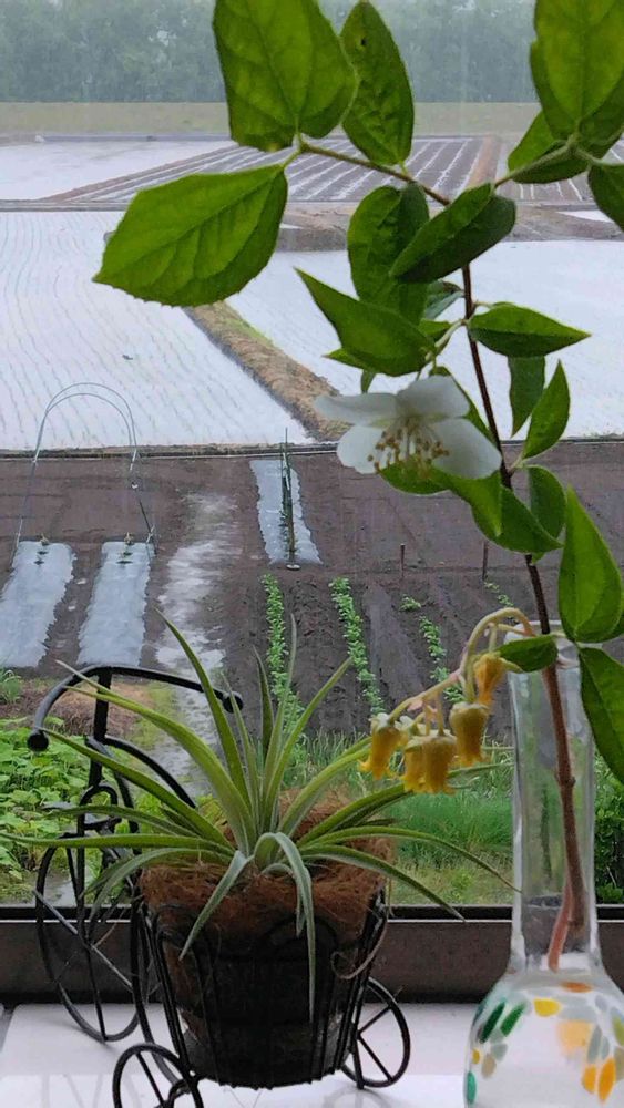 キッチンから見た、キッチンフラワー&畑の様子🤗