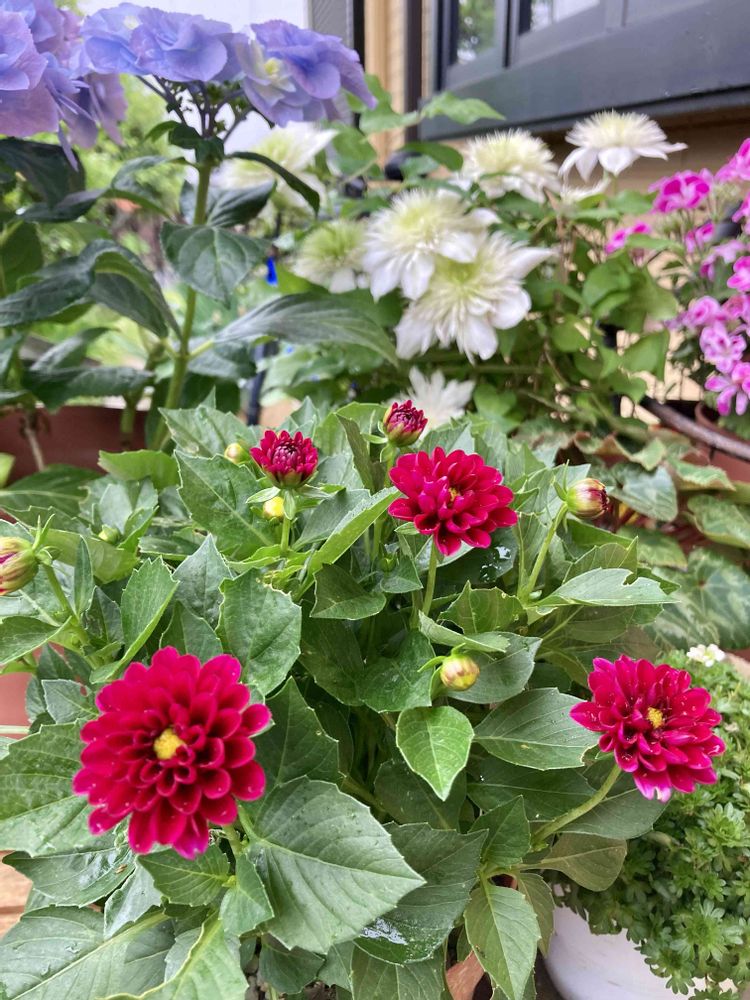 お花さん達、軒下で雨宿り中☔️🎶☔️🎶