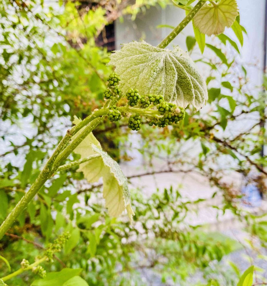 シャインマスカットの実が付きました。今年2月に友人から貰って植樹しましたが,3ヶ月で実が出てきたので感激です。