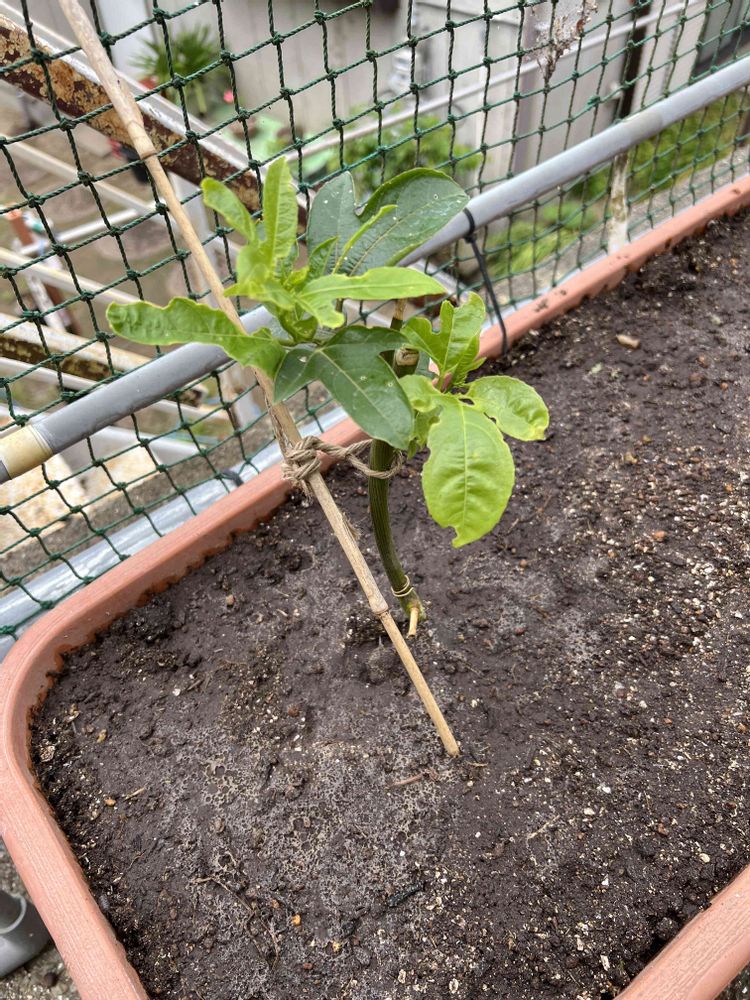 ベランダへ挿木したパッションフルーツの苗を植えました。
