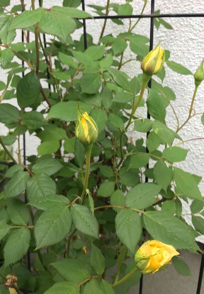 どのバラも緑色だった蕾たちがそれぞれ色づきながらふくらんで来ました✨✨
