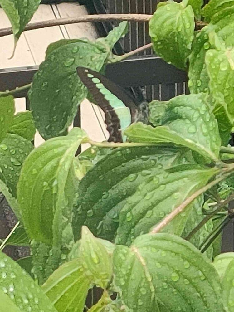 ヤマボウシの葉に止まるアオスジアゲハ🦋