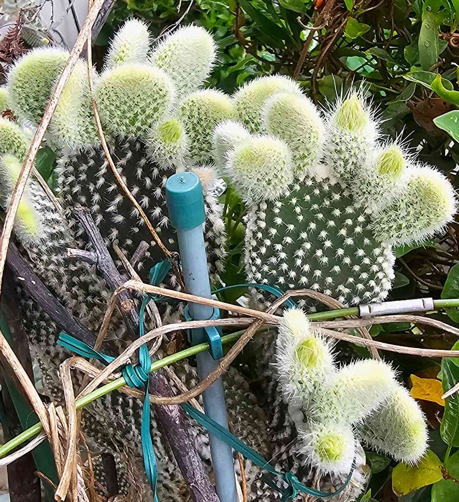 バニーカクタスの新葉に混じって、尖ってるのは、花芽🥰葉が、落ちたり、大きく育ち葉挿ししたりして、何年経ったんだろう?この親株も大きく成ったから、葉挿ししようかと思っていたら、丸葉に混じって、尖った花芽が、出来て、凄く嬉しい🥰蕾が、咲くのが楽しみ🥰