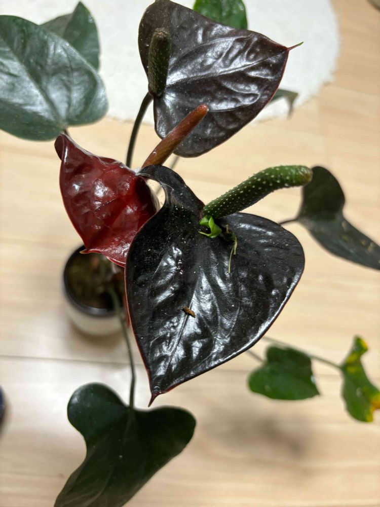 ねー!ブラックアンスリュームにも赤い花が咲くんだね😆