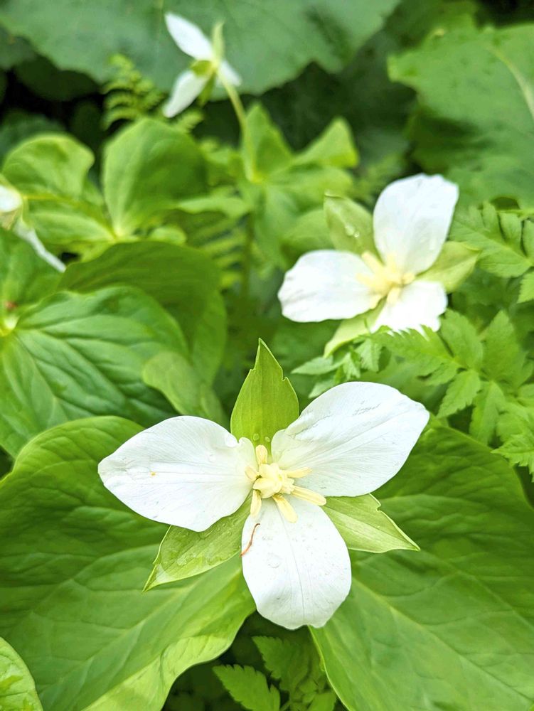 仕事終わりにワラビを採りに近くの山に行くと、道路脇に沢山のオオバナノエンレイソウが咲いていました🤍