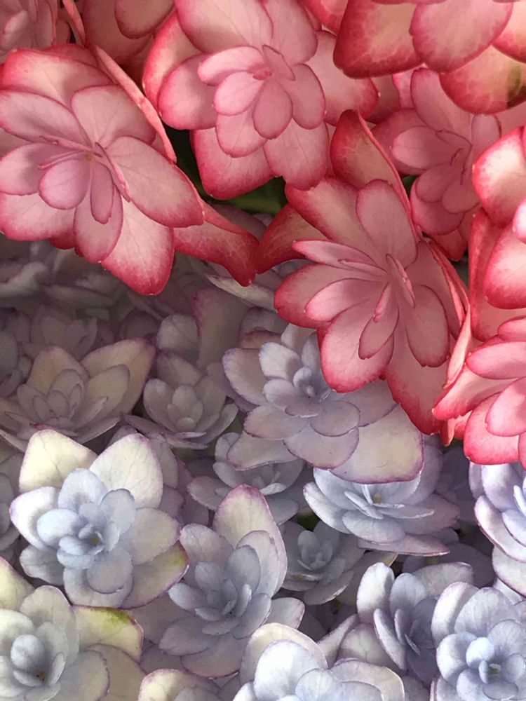 よく紫陽花は土のペーハーで色が変わるっていうけど、植え替えしたら同じ色にならなかったんですね〜👀