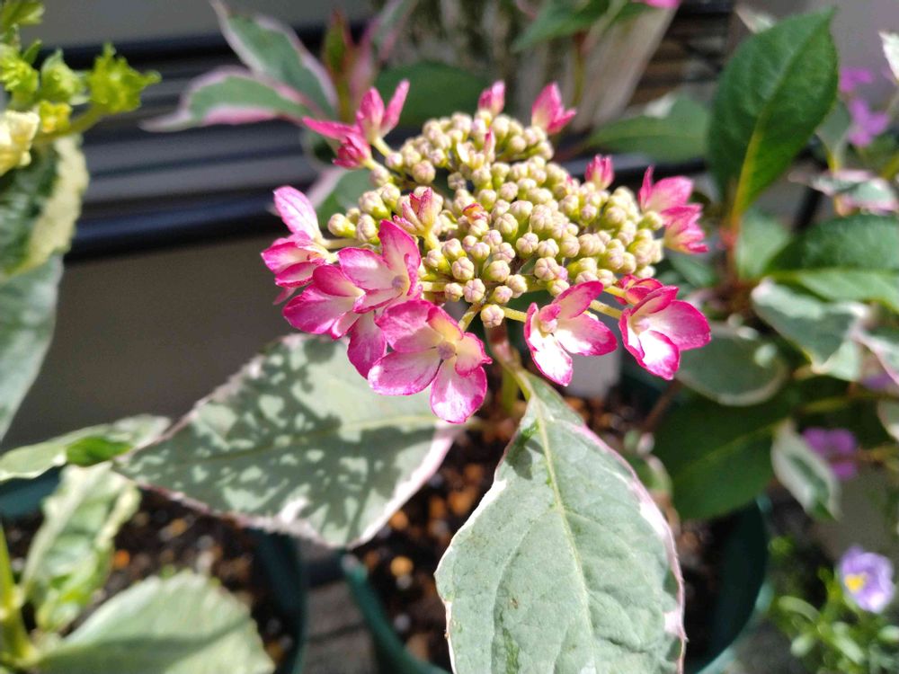 昨年とーっても小さな苗でお迎えした、ピンクの斑入りのアジサイさん💗