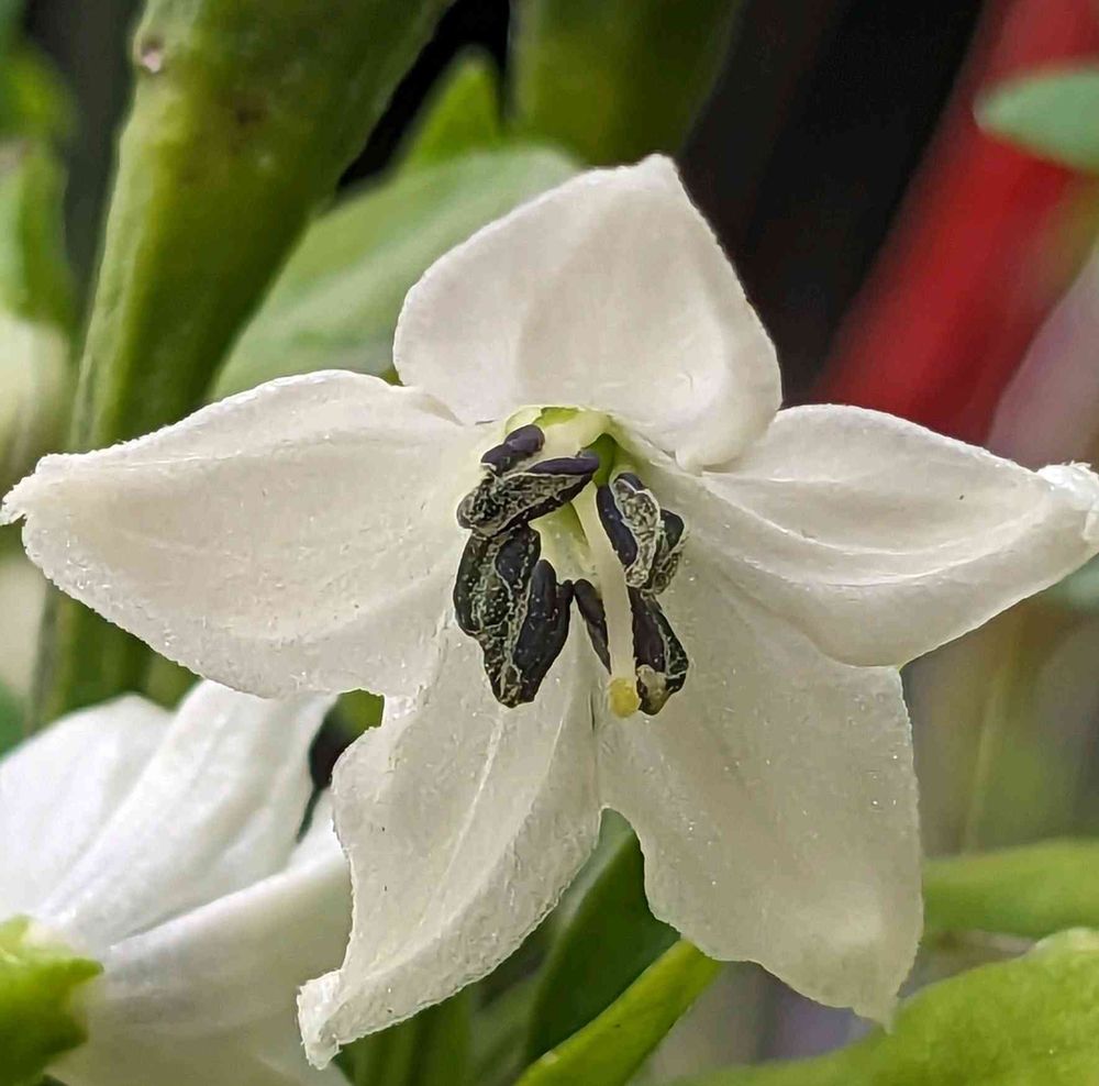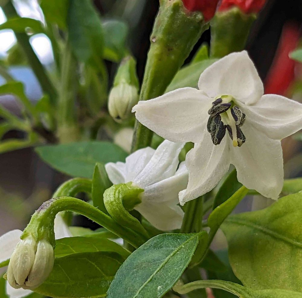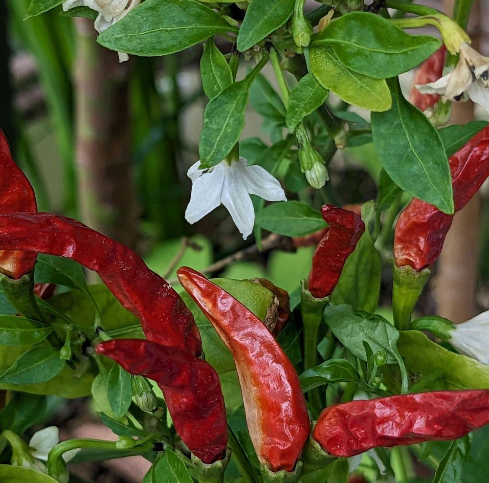 ③去年勝手に生えたトウガラシ そのままにしておいたら花が咲いてクリスマスカラー😄