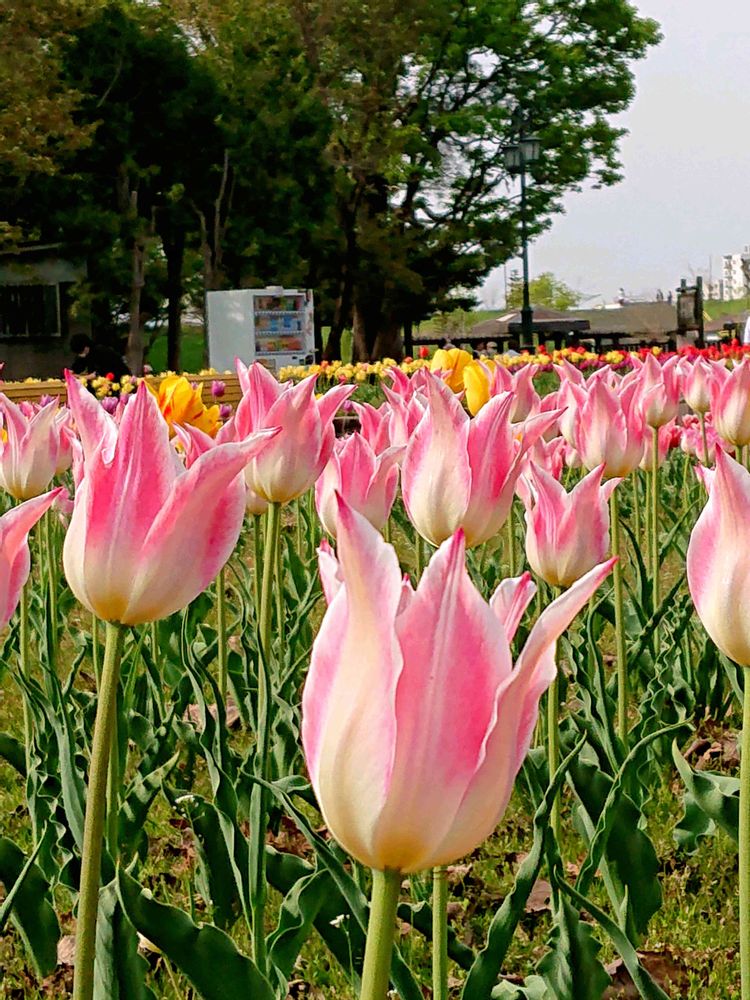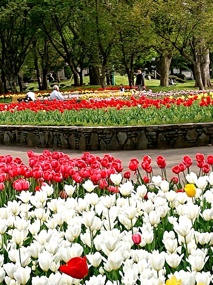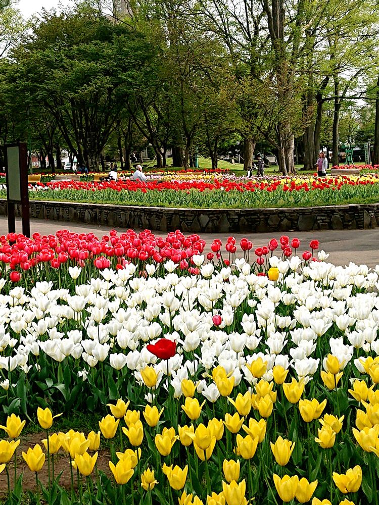 常磐公園へ行ってみると色とりどりのチューリップが迎えてくれました。