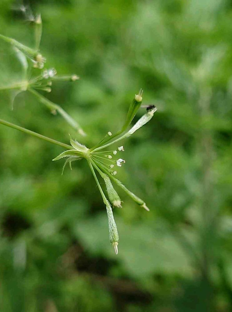 枝先に複散形花序を出し、小さな白色の花をまばらに付けます