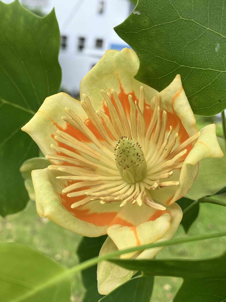 花咲く木や全く花の無いものがあるが雌雄区別は無いようだがなんでかな 近くにユリノキがあったのでみに行ったは手の届きそうな所に花