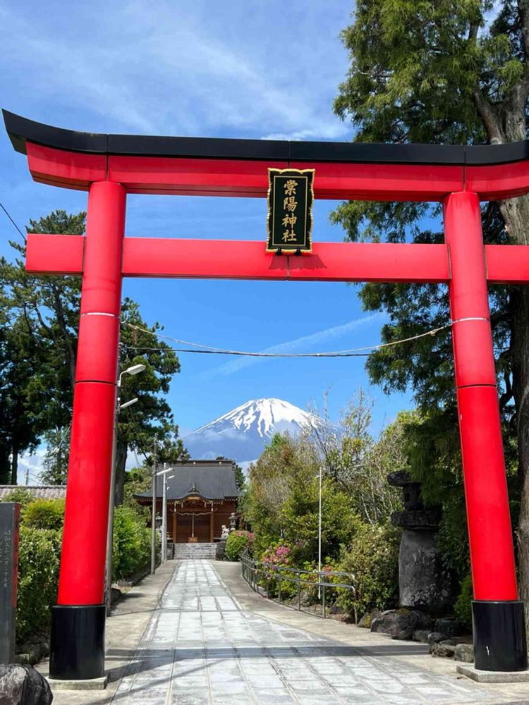 ひみつのアッコちゃんさんの富士山の湧き水の川,川に囲まれた田んぼ,神社の鳥居から見た富士山の投稿画像