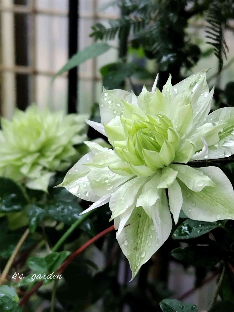クレマチスのシロマンエ🌿そんなに素敵なのね🥰 昨年 四国の方から苗を貰っていま蕾が付いてるのよ➰💓真っ白かと思っていたから超嬉しい🎵😍🎵