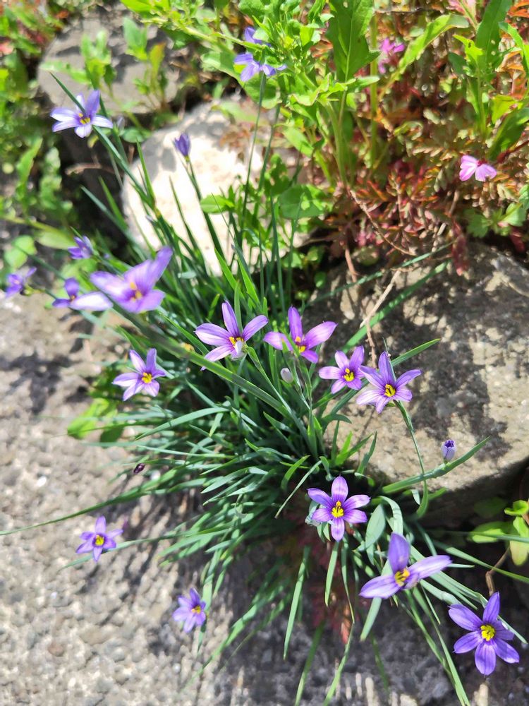 池の周りで小さなニワゼキショウ 咲いています よく観ないと踏まれてしまいそう