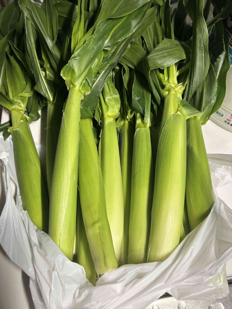 通常、とうもろこしは1本の枝から2本の身を収穫するが、成長の過程で3本になることもあるそう😉🤔