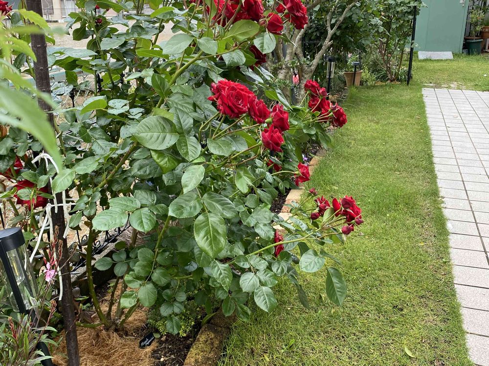 今年はうちも花が大きくて、雨と風でクビがグラグラに傷んでしまい、元には戻りませんね。調子が崩れたのもいますが、強い子たちと信じて、仕切り直しですね🌹