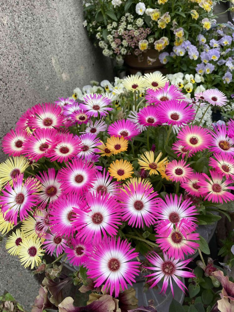 実はリビングストーンデージー、しばらく裏庭のほうに置いてあって、道路から見えるところに出したのは最後のほうでした😂😂今年はあっという間に蒸れました💦💦