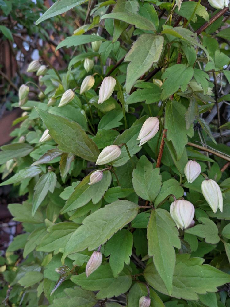 3、クレマチスモンタナ プリムローズスター ツルがどんどん伸びるので巻きが追いつかずカットしたら今年はスカスカ〜😅