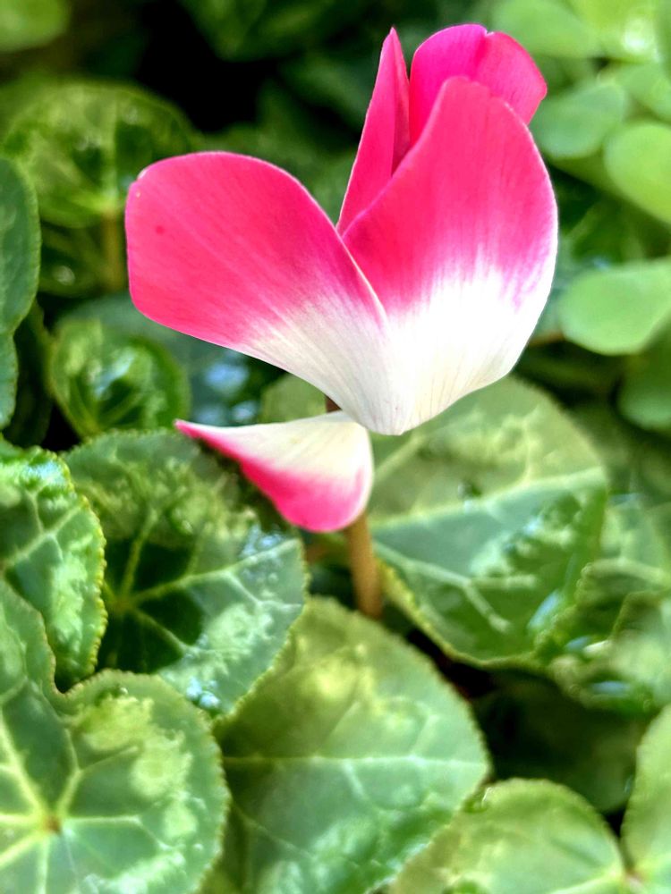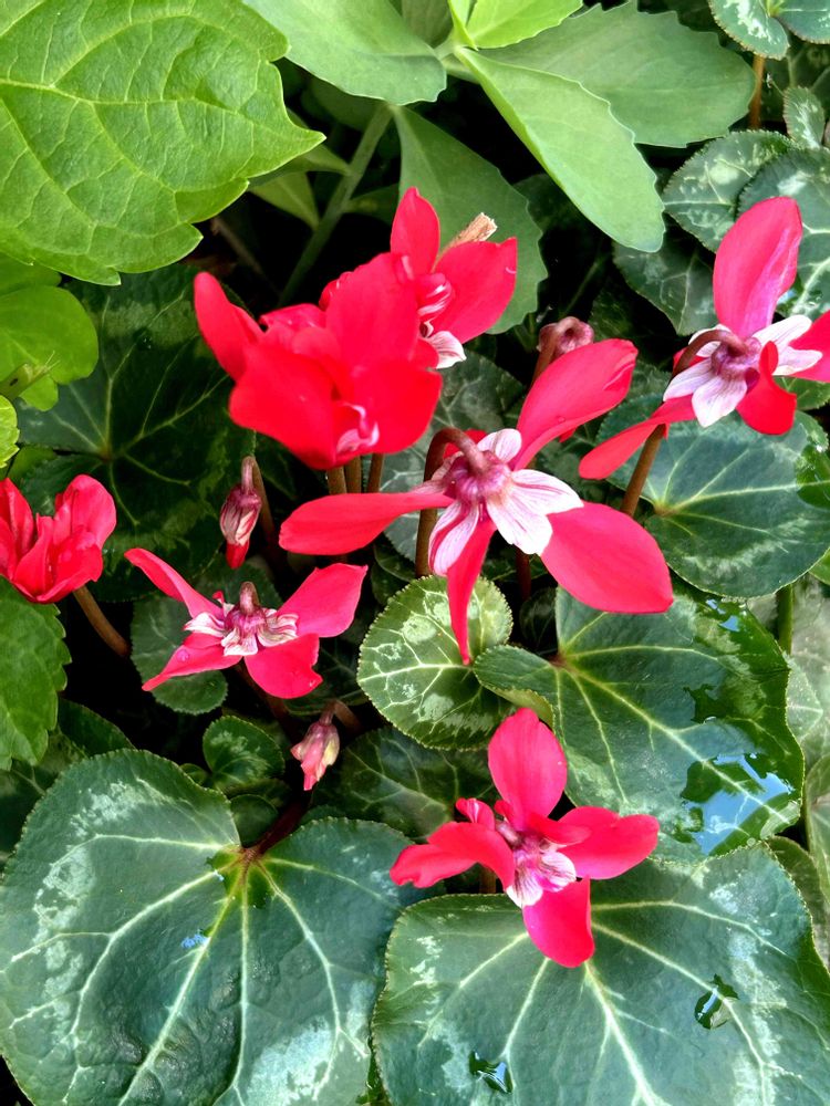 昨秋に買って、冬中窓辺で過ごしたジックスや他のシクラメンを花が終わったので木陰に置いてたら、又綺麗に咲き出しました🌿💕🌿