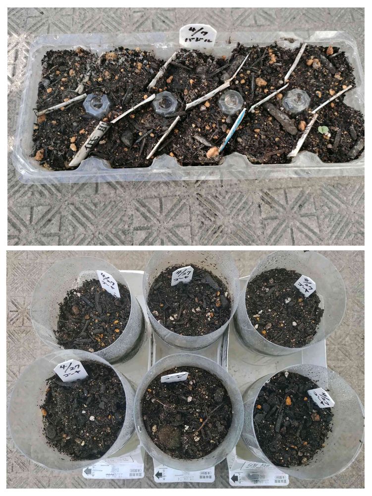 先週写真撮った後、やっぱり何日に蒔いたかわかるようにしたくなって、札を追加した。