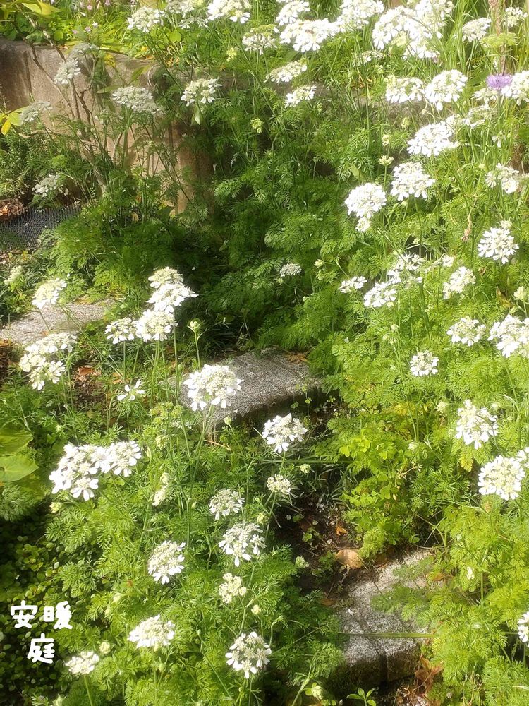 うちもあえてまいてなくて、レンガやいしの間から出てくるオルレアのみです!