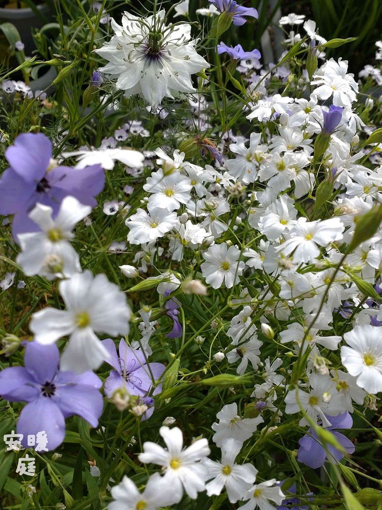 3 種まきのカスミソウとニゲラ、ブルーはビスカリア🎵