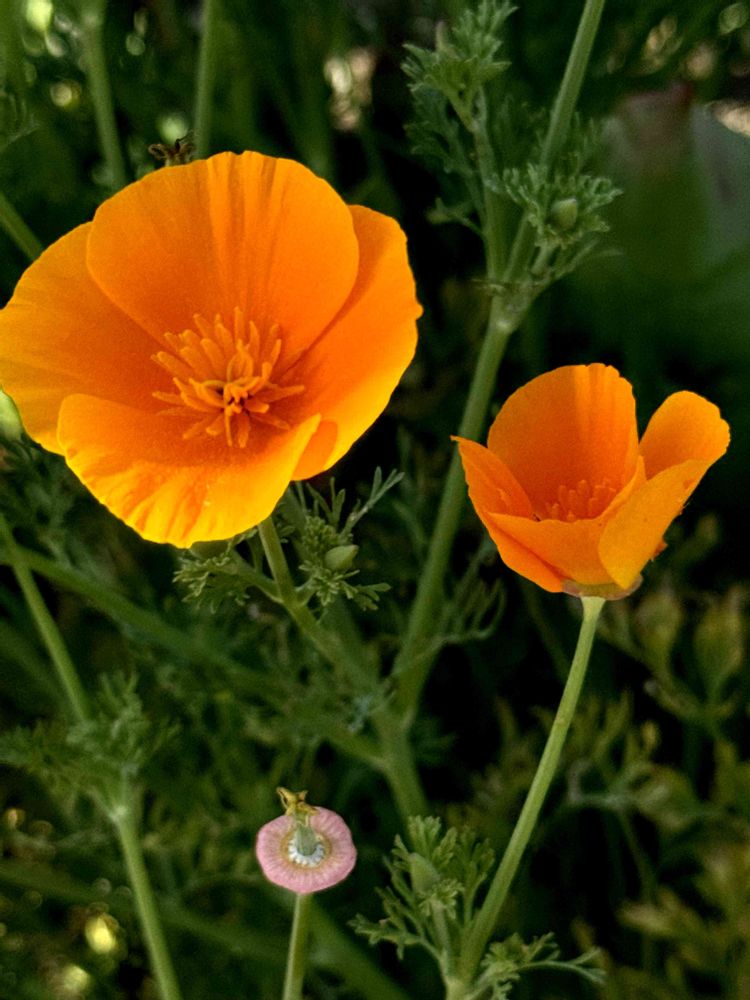 小さな薔薇園見たいな花壇に咲いていました、ハナビシソウやアグロステンマ