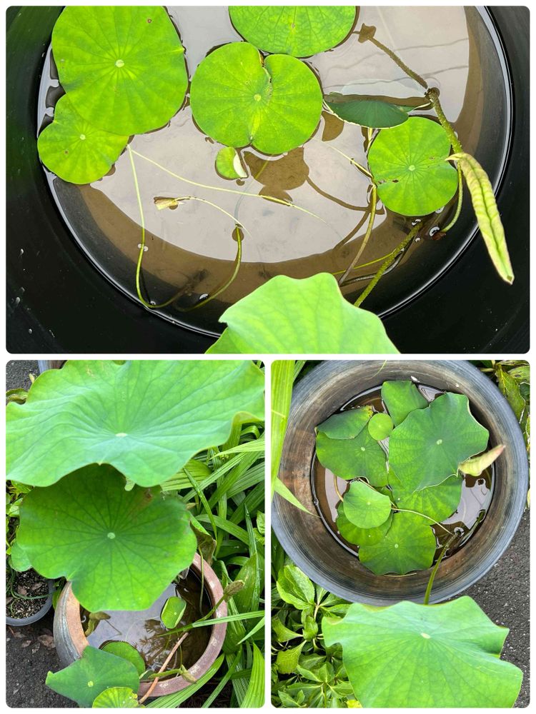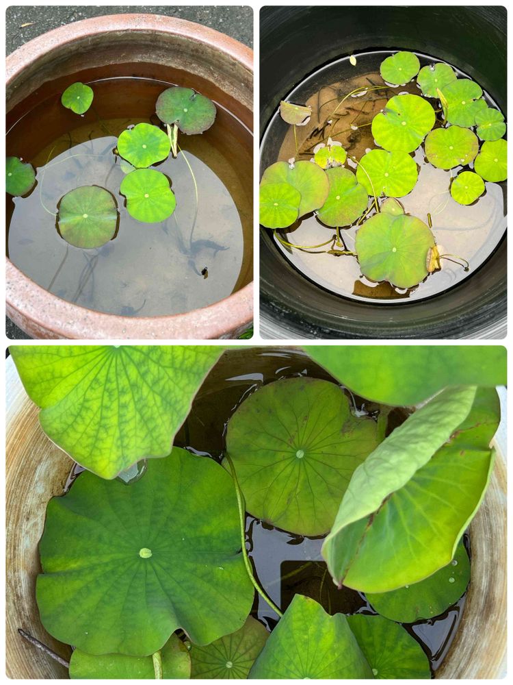 蓮の植え替えをして1ヶ月経ちました。白花の方が育ちが良いみたいです。
