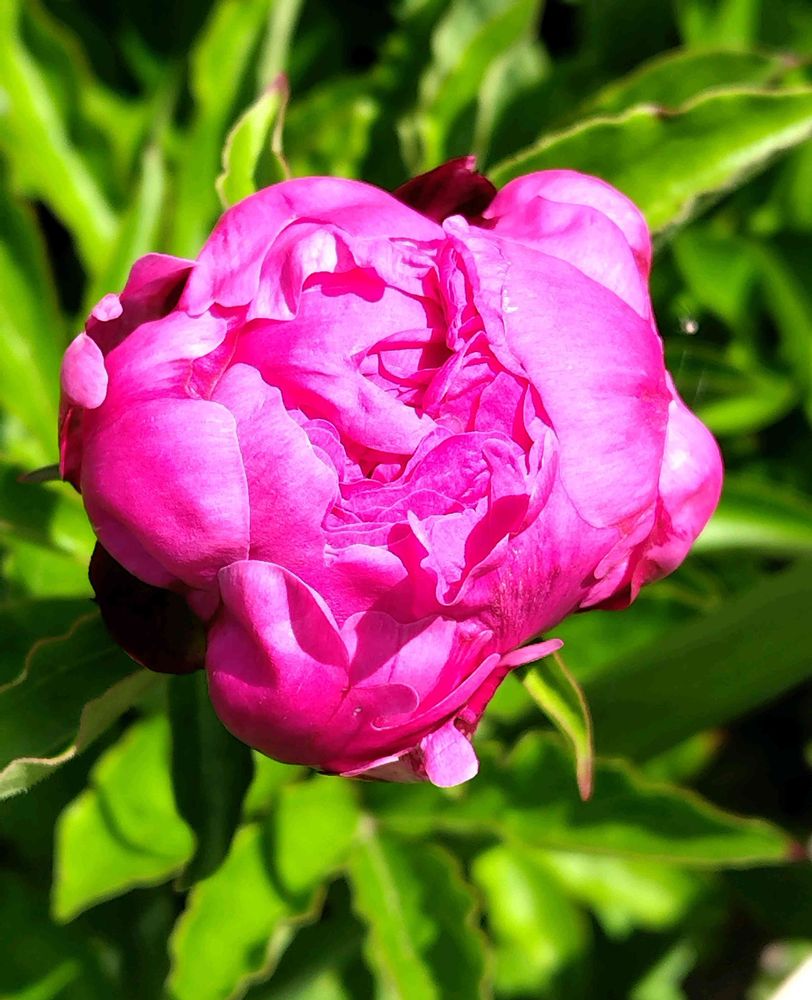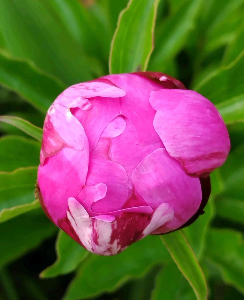 濃いピンク色の八重咲きの芍薬が咲き始めました💓①②③
