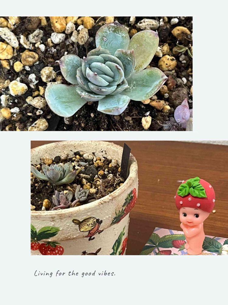 鉢はさくら餅子さんのリメ鉢。ほーちゃんの🍓QPさんも祈ってくれてます。